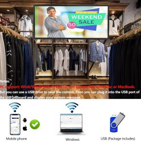 P6 Outdoor LED Sign with 160×64 Resolution, 40”x17” Full Color LED Scrolling programmable Sign, WiFi + USB led Digital Signage to Display Customized Text, Images and Video for Business Advertising